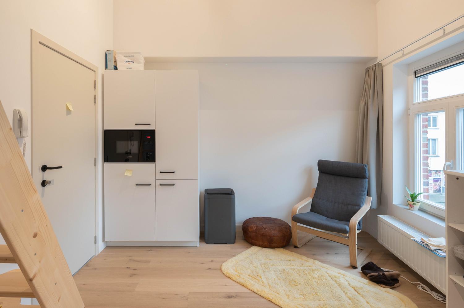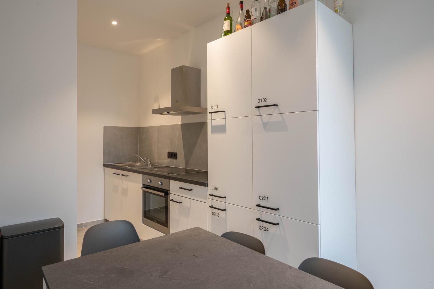In het pand bevinden zich 2 moderne studio’s met kitchenette en badkamer, alsook 6 kamers met privésanitair. Gezellig koken is makkelijk dankzij de ruime gemeenschappelijke keuken.