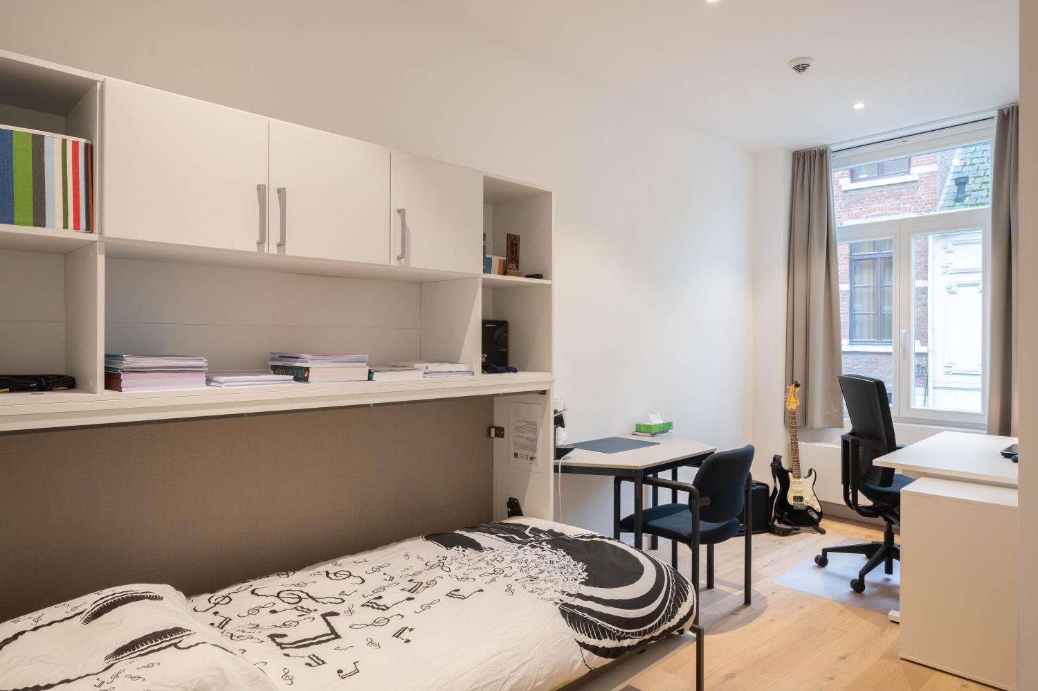 De perfecte locatie voor wie op campus Gasthuisberg of Arenberg moet zijn. Het gebouw bestaat uit 2 verdiepingen – de kamers onder het dak hebben een duplex-verdieping.