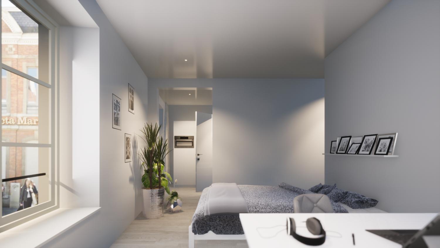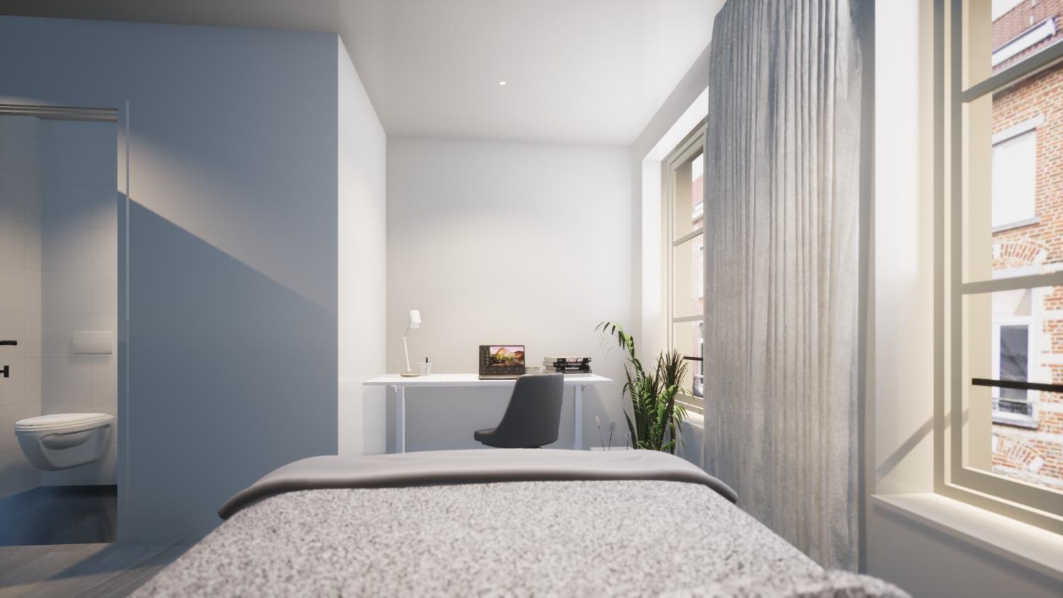 Het gebouw bestaat uit 3 verdiepingen en herbergt 3 studio’s en 6 kamers. In de studio’s vind je een moderne kitchenette en een eigen badkamer. Ook de kamers hebben privésanitair. Studenten kunnen comfortabel koken in de gemeenschappelijke keuken.